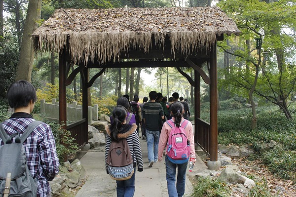 下山之后,同学们来到了玉泉旁边久负盛名的杭州植物园。这里长有美国的红杉、希腊的油橄榄、日本的碧桃、比利时的大王莲等,成为植物荟萃之地。同学们在游览过程中认真学习植物学方面的知识,有效补充了理工科学生的短板,陶冶了自己的身心,并在轻松愉快的氛围中,畅谈自己的过去和未来,寻找有共同爱好的小伙伴,加强了班集体的凝聚力。