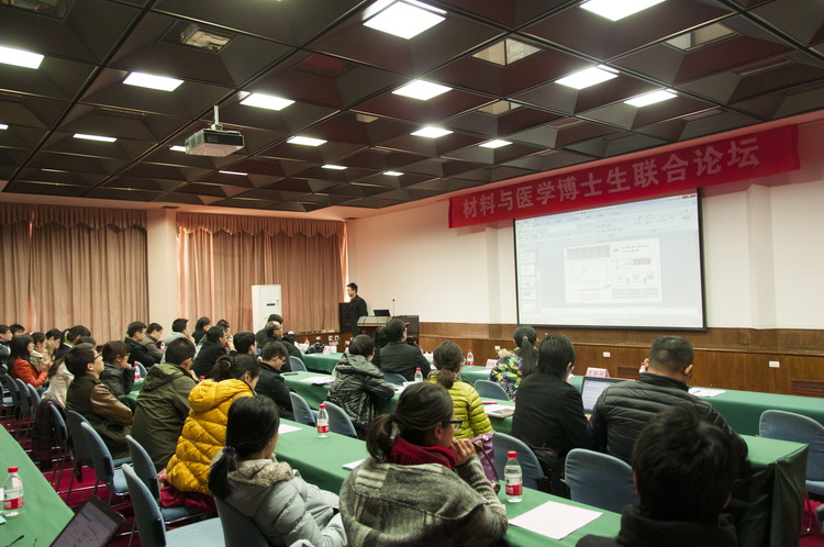 2013年12月10日杭州的冬日有些寒冷,但是浙江大学邵科馆211却是人才济济,温暖如春。浙江大学材料系与浙江大学医学院附属第二医院联合举办的材料与医学博士生联合论坛在这里顺利举行,来自材料系和浙医二院的十四位博士研究生结合自己的研究课题对材料和医学的交叉发展进行了深刻的交流讨论。本次论坛由材料系系主任叶志镇教授主持,论坛同时邀请到了浙江大学学术委员会主任张泽院士以及浙大材料系和浙医二院的数十位专家教授。