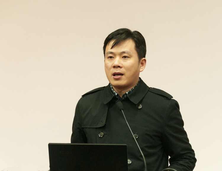 博士生代表汇报环节由材料系分管研究生教育的副系主任吴勇军教授和浙医二院王凯副书记共同主持,材料系和浙医二院的同学交叉进行汇报。首先进行汇报的是材料系叶志镇教授课题组的蔡斌同学,他的报告题目为“生物传感材料及器件”。他首先从电化学生物传感新材料入手,阐明未来生物传感器的发展方向是微型化和便携化。接下来举出了细胞支架、生物成像和药物载体等多种应用。