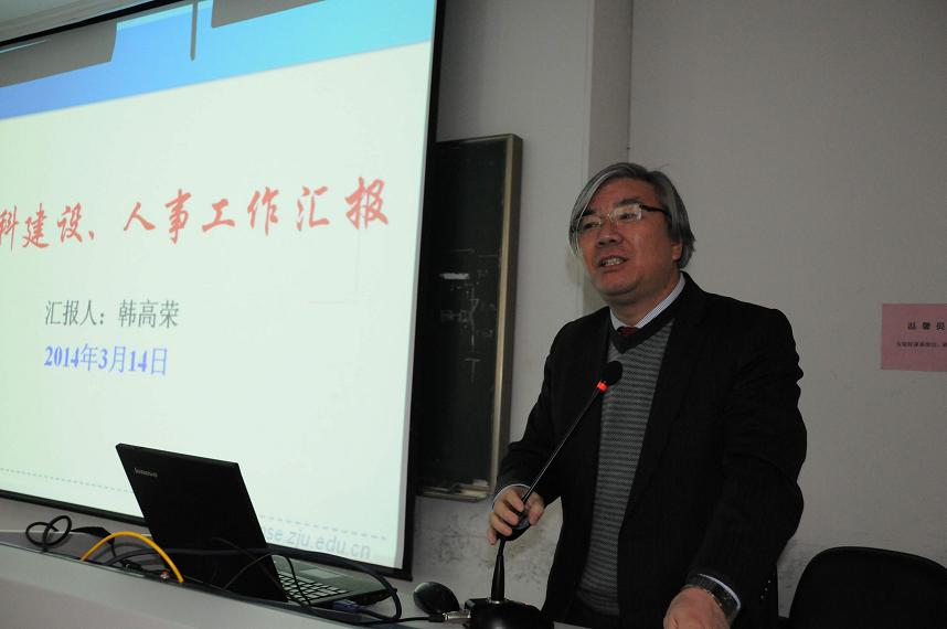 接着,系主任韩高荣教授、副系主任陈立新教授、吴勇军教授分别就材料系学科建设、人才队伍建设、本科生教学、研究生教学、科研工作、外事工作、实验室安全等工作做详细汇报。会议进一步理顺了材料系学科发展方向和思路,为新学期各项工作顺利开展奠定了坚实的基础。