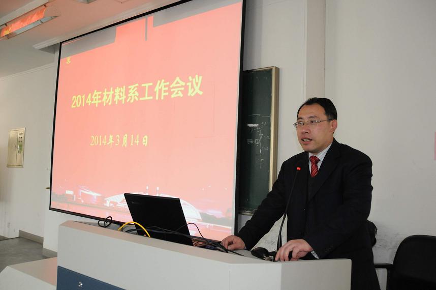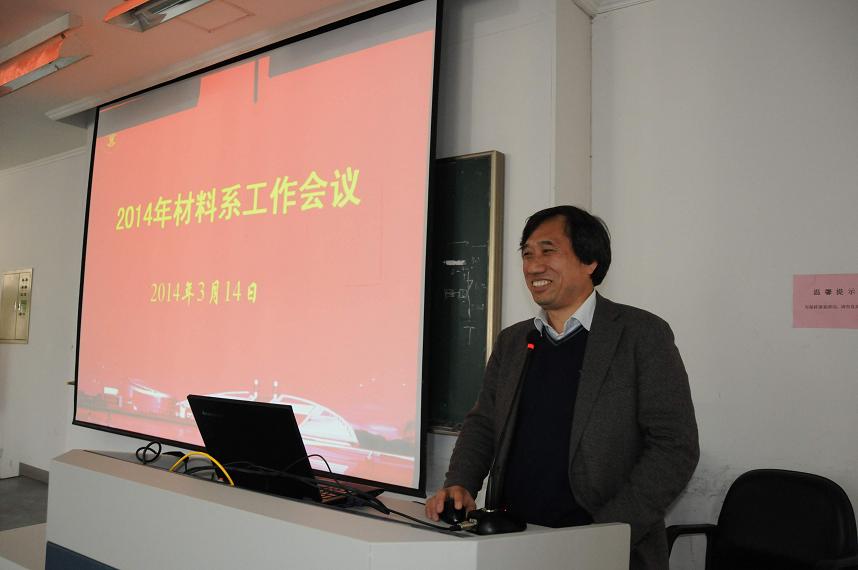 3月14日下午,2014年材料系工作会议在玉泉校区曹光彪西楼103教室顺利召开。全体材料系在职教工参加了本次会议。会议以总结材料系党的群众路线教育实践活动为契机,紧紧围绕材料系学科建设、人才队伍建设、教育教学、科研工作、实验室安全等工作开展了丰富的交流汇报。会议由系党委书记王东主持。