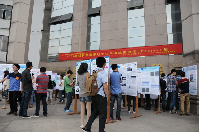 5月12日下午,天朗气清。为更好地展示材料系研究生实验和研究的阶段性成果,给师生在科研上创造一个更为广阔便捷的交流平台,加快国际一流水平的学科建设,浙江大学材料科学与工程学系在曹光彪大楼二楼大厅举行2014年春季研究生学术成果墙报(Poster)展。本次参展的是2012级科学硕士研究生(两年半制)和部分博士生。