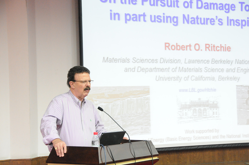 本次论坛由毛星原教授主持,首先作报告的是Robert Ritchie教授。毛星原教授对Robert Ritchie教授做了简要的介绍。Robert Ritchie教授目前任职美国加州大学伯克利分校教授,美国劳伦斯伯克利国家实验室首席科学家,美国国家工程院院士,英国皇家工程院院士以及俄罗斯科学院外籍院士,曾担任美国加州大学伯克利分校材料系主任、美国劳伦斯伯克利国家实验室材料部主任等多项重要职务。Ritchie教授是世界著名的材料科学家,尤其在结构材料断裂力学等领域取得了令人瞩目的成就,曾获得包括材料领域极富国际声誉的Acta Materialia 金奖和美国100杰出青年在内的30多个奖项。
