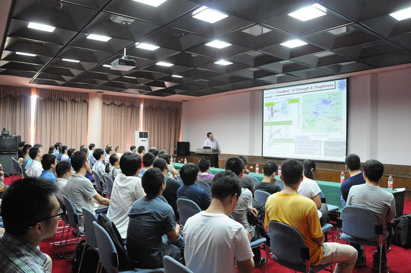 2014年6月6日上午,浙江大学求是材料科学论坛第二十七讲在邵科馆211顺利举行,此次论坛邀请到了约翰霍普金斯大学的马恩教授、加州大学伯克利分校的Robert Ritchie教授和美国匹茨堡大学毛星原教授。张泽院士、系主任韩高荣教授、蒋建中教授、李吉学教授、王小祥教授等部分老师和学生参加了讲座。