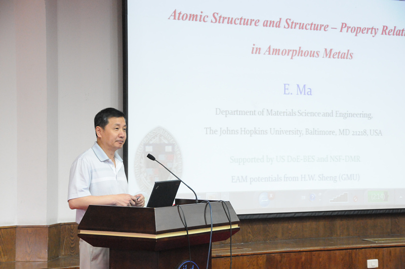 随后由马恩教授作报告,马恩教授毕业于清华大学工程物理系,曾在美国多个大学研究和任教,现任约翰霍普金斯大学教授,是国际著名的金属材料学家,主要研究领域为非平衡金属材料,在包括《Nature》和《Science》等国际著名期刊上发表论文近270余篇。