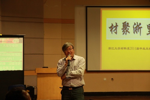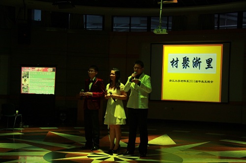 2014年6月17日晚,浙江大学材料系2014届本科生毕业晚会在玉泉校区永谦活动中心三楼多功能厅顺利举行,中科院院士张泽老师、材料系系主任韩高荣老师、党委书记王东老师、副系主任陈立新老师等出席了本次晚会。晚会以青春离别为主题,对即将结束大学四年学习生涯的毕业们给予诚挚的祝福,祝福他们怀揣着梦想、奔向更加美好的明天。