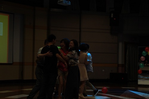 紧接着到了游戏时间,“抱得美人归”的游戏将男生和女生分成不同的数字,大家要在主持人喊出一个较大数字后自由组合成正确数字。现场在主持人带动和大家热情参与下,男生和女生紧密的抱成一团,毕业不舍之情萦绕在人们心间。游戏环节过后,就到了树洞时间,将大家匿名的真心话,随机抽选展示给大家。随后,范家鸿和何桦浚带来了粤语版的《真的爱你》;张洪伟和赵炯的相声,《口吐莲花》,引得现场阵阵笑声和掌声;1001班全体成员带来的歌舞《别闹儿》,更是将晚会的气氛推向了最高点。