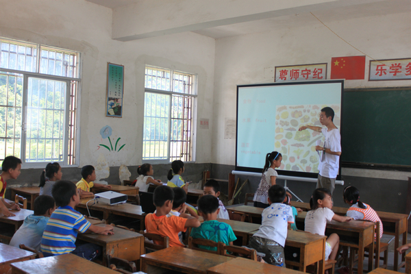 当地的小学并不开设英语课,因此,孩子们在英语课上显得极为活跃,不时地提出一个个问题。同时,也是因为平时接触不到英语,他们对以前学过的英语知识遗忘得非常严重,于是我们花费了不少时间让他们重新记忆起前两年的支教队员教过的字母和单词。这种情况使我们思考如何让我们所教的知识不在这十天之后就成为过眼云烟,如何让我们短期的教学产生的影响不仅仅局限在支教的这几天中。
