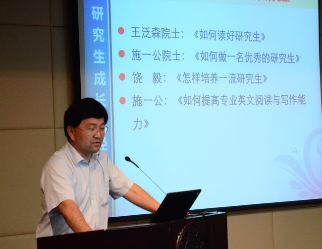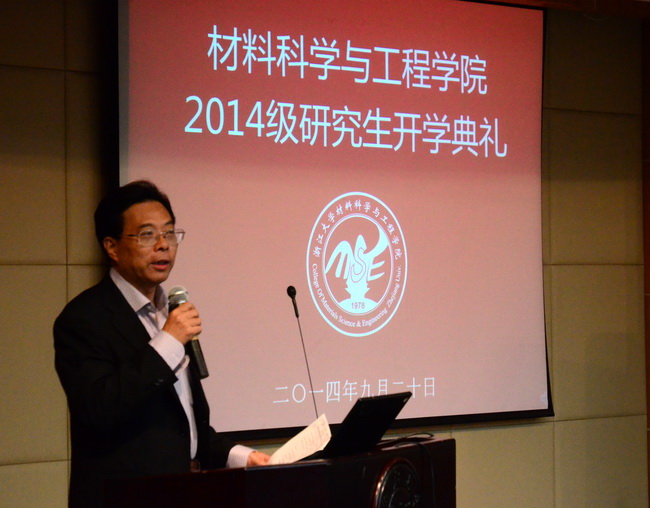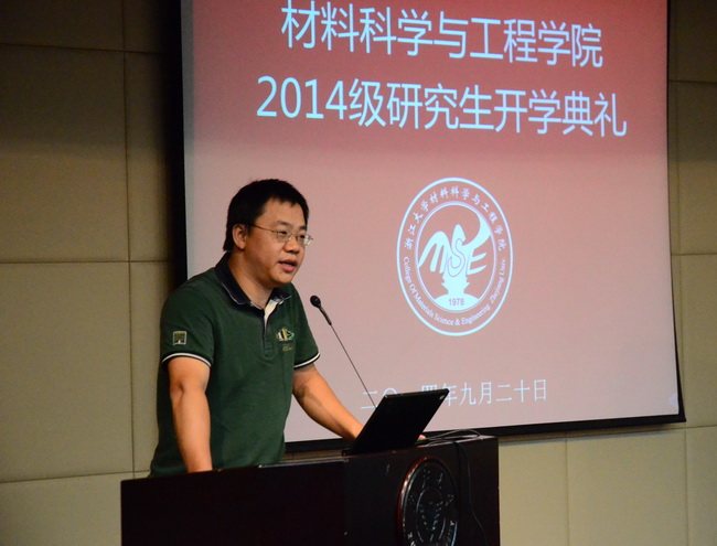 学院学术委员会主任叶志镇教授首先发表讲话,他说,作为研究生第一重点就是要遵纪守法、端正学风,做学问要养成良好的科研态度,“像外行一样思考,像专家一样认真实践”,在科研的道路上把握方向,不懈努力。随后,主管研究生教育工作的陈立新副院长作《材料学院研究生教学培养简介》报告。陈老师立足学院实际情况,介绍了学院的软硬件条件与管理制度,深化了研究生课程与培养体系的重要意义,陈老师的报告细化要点,着重强调了今年的新政策新变化,为在场同学解答了许多心中的疑惑。