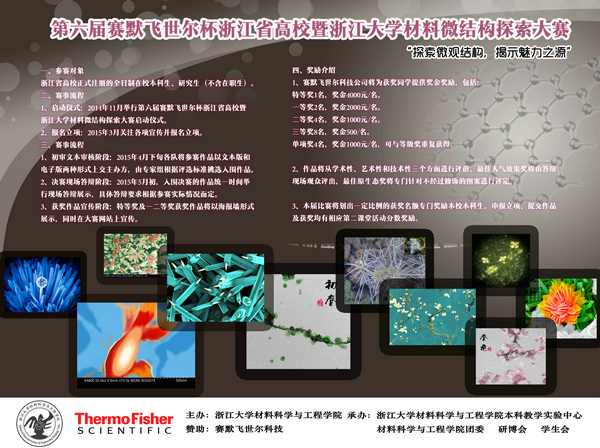 1、启动仪式:2014年11月举行第六届赛默飞世尔杯浙江省高校暨浙江大学材料微结构探索大赛启动仪式。