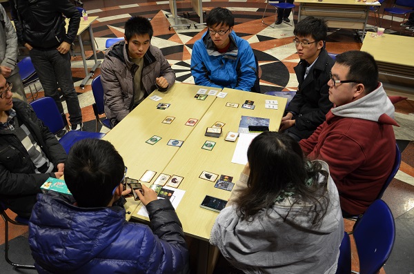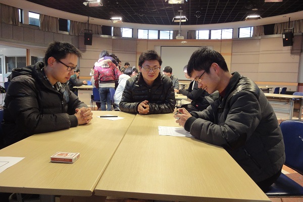 下午比赛主要为棋类项目及三国杀新3V3项目。下午的比赛一开始便产生了象棋项目的名次,卢鸿翔、袁建锋和励东裕依次获得冠亚季军。紧接着围棋、五子棋项目在象棋项目结束后便正式开始,比赛的过程中,赛场上的氛围比较轻松,由于考验选手的冷静思考能力,活动场地安排在主会场二楼的排练厅,整个赛场环境比较安静。而最为吸引眼球的项目三国杀新3V3则在三楼排练厅举行,现场围满了前来观战的同学,最终经过三小时的厮杀,该项目的冠军被倪绍翔、王宇泽、苏雄飞获得,燕伟、张孜之、连威和于洋、张进、李萌分获亚军和季军。下午3点左右,五子棋项目的冠亚季军也有了归属,来自电气的邵渊同学折桂,材料系刘苏亚及热能系许霖杰分获亚季军。围棋项目则是以精美小奖品的形式对参与优胜者给予奖励。