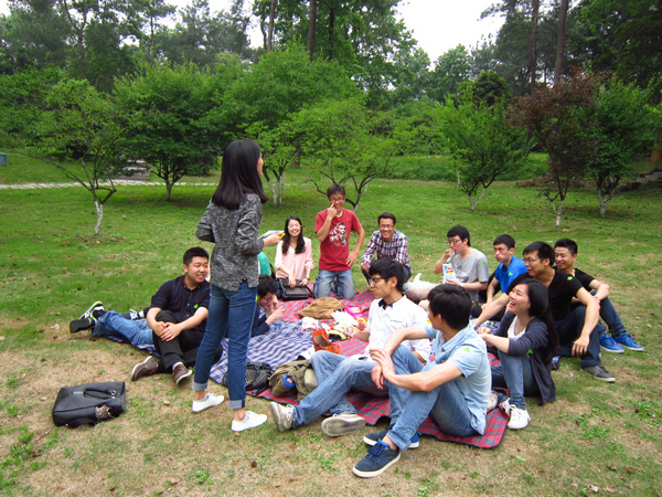 之后就是自由活动时间,同学们拿出之前准备好的零食与桌游卡牌,在植物园柔软舒适的草地上开心畅玩。同学们不时地交流着,欢笑着,游戏的乐趣与自然的美景让同学们从繁重的科研与学习压力中解放出来,尽情的享受着大自然,享受着人生,体味着生活的乐趣,体味着天真纯朴的同窗之情。在享受美食与游乐的同时,同学们也自觉的收拾起垃圾废品,不让任何一丝污染破坏植物园天堂般的美丽。