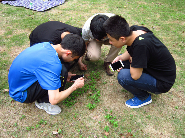 欣赏完沿途的风景,团支书组织同学们在一片大草地中央坐下,开始进行积极有趣的团队活动。所有人分成四组,分别要完成以下三个任务。首先,按照每个小组都从团支书的手中获取三张植物照片,然后在规定时间内每个小组都要在植物园内找到其所对应的三种植物并拍成照片带回来。第二项任务是在指定时间内,运用附近的植物等一些材料在特定的纸张上作画,并且清楚讲出画作的内涵与意义。第三项任务是趣味猜植物:选取四名代表在额前标注植物名称,然后向其余同学发问关于该植物的相关问题,最终根据同学们的回答来确定额前所写的植物是什么。