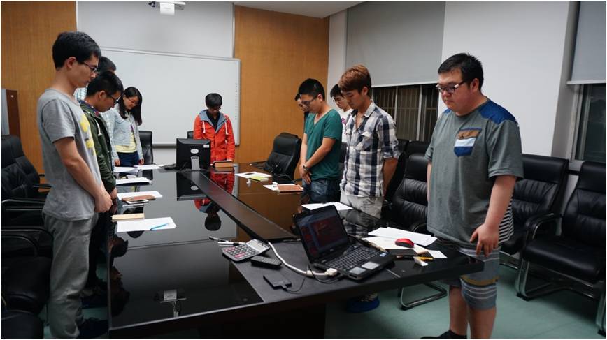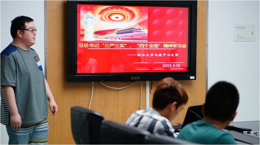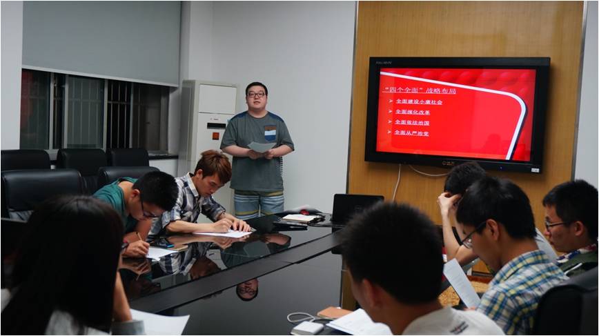 2015年5月12日晚上七点,初夏凉风徐徐。电镜中心党支部在教十一一楼会议室召开了以习总书记“三严三实,四个全面”为主题的支部学习会议,会议由党支部书记吕丹辉同学主持,支部13名正式党员和预备党员到场。
