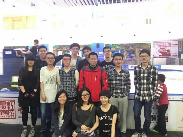 本次团日活动是和1102班一起举办的。4月26日下午1点,我们在八舍楼下集合完毕,同学们都兴致勃勃,很多人虽然是第一次滑冰,却也不怕摔不怕累;当然这里面也不乏高手。