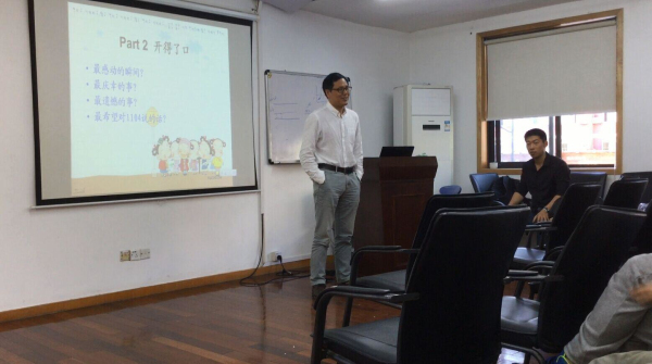 活动的第三环节是游戏环节。这是一个同学间互动性的游戏,规则规定两人为一个小组,小组两人交错回答有关对方的问题,完全正确记2分,几乎正确记1分,答错记0分。分数最高的小组获得大奖,其他参与者均可获得纪念奖。在这个环节中,同学们表现出了极高的热情。我们的班主任皮孝东老师也友情参加了这个游戏,引起了一波高潮。最终,巨菡芝和姚珠君同学,成功获得了第一名的好成绩。