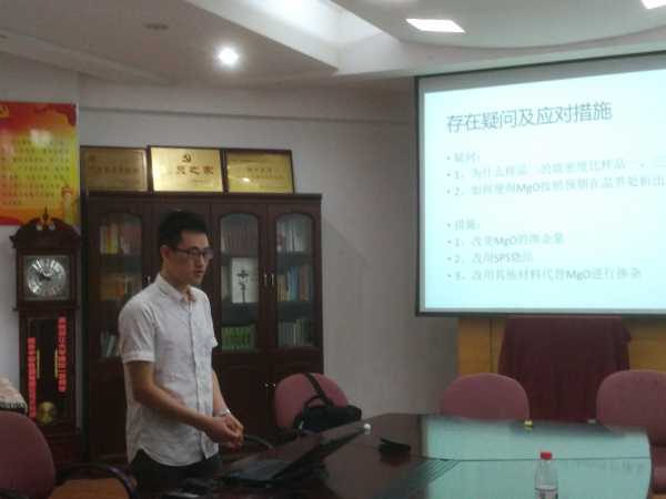 接着朱童庆同学从材料样品的制备、放氢性能的测试、材料微观结构与改性机理的分析介绍了纳米RExAly对NaAlH4储氢材料的催化改性研究,并对其项目的三种材料进行了横向比较,最终得到其真实可靠的实验结果。