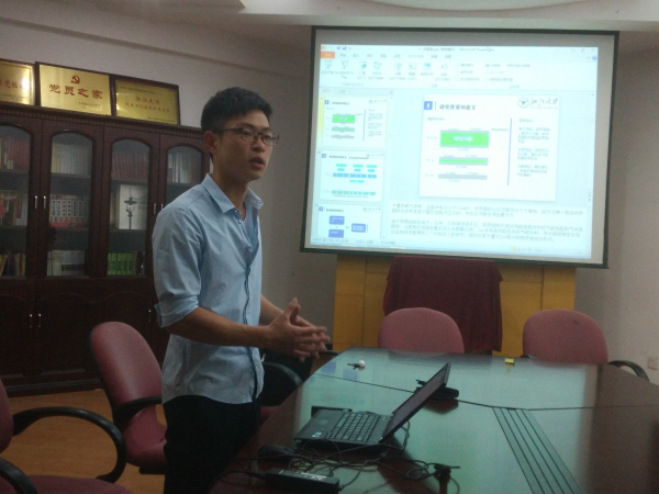 之后高广哲同学展示了有机太阳电池工作原理图,并从硅纳米颗粒制备太阳电池的背景、研究意义、实验步骤、样品制备、性能测试、实验结果分析、结构分析一系列清晰科学的工作得出利用硅纳米颗粒制备太阳电池的实验结论,并给大家介绍了其项目的实验进展。