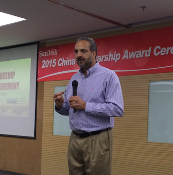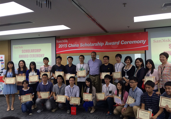 2015年5月29日,第二届SanDisk中国学者奖学金颁奖仪式在上海SanDisk(中国)公司隆重举行。SanDisk全球生产及供应链运营高级副总裁Gursharan Singh先生、SanDisk 亚太区人力资源高级总监单桔女士、SanDisk人力资源总监孙炜萍女士、浙江大学发展联络办公室党颖副主任和胡维佳老师、材料学院团委书记杨倩老师出席本次颁奖典礼,浙江大学和上海交通大学2015年获奖学生及部分2014年获奖学生代表参与此次活动。