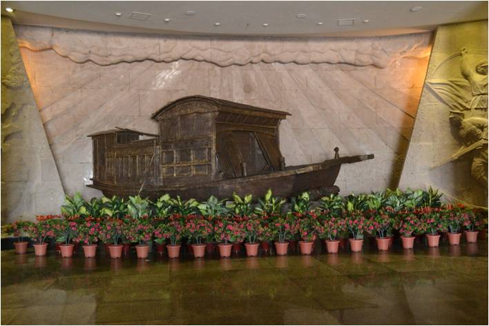 二楼展厅着重介绍了中国共产党创建的历史。一幅幅珍贵的照片,一篇篇翔实的史料以及一件件先烈的遗物都让我们感慨万分。最让我们印象深刻也最称奇的是仿制的“红船”静静地卧在那里,将历史再现了一番,使人如身临其境。我们仿佛看见船舱内毛泽东等一大代表正在开会并热烈讨论,最后庄严宣告中国共产党成立。