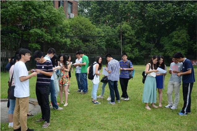上午九点左右,前来参加活动的两院学生在玉泉校区田径场升旗台处集合,活动开始前两个不同学院的研究生展开了热烈地交流。上午九点半联谊活动正式开始,主持人首先对参与人员进行了随机分组,随后通过两个简单的小游戏让大家互相熟悉。紧接着,校园定向越野正式开始,活动以不同学院的男女同学随机组队的形式,在校园里完成任务卡上的任务,每个任务都有相应的分数,在规定的时间获得分数最高的队伍将获得第一名,以此类推。活动一共分为五支队伍,在经过简单的路线讨论后,各参赛队伍开始完成各自的任务,途中参赛队伍还可以完成主持人通过微信群发布的临时附加任务。至中午十二点半,各支参赛队伍均到达集合地点,最终比赛决出了1到5名,并获得相应的奖励。