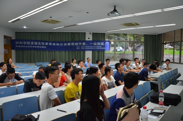 2015年月26日下午1:30至3:30,浙江大学材料学院首届实验室安全知识竞赛半决赛和决赛在曹光彪西楼104教室隆重举行。浙江大学校实验室与设备管理处玉泉校区办副主任金海萍老师,材料学院党委副书记皮孝东老师,材料学院研究生辅导员杨倩老师应邀出席并担任评委。此次竞赛的预赛于6月19日下午举行,共有十八支队伍参加,最终排名前十的队伍进入了今天的半决赛和决赛,为大家带来了一场精彩绝伦的实验室安全知识比拼。