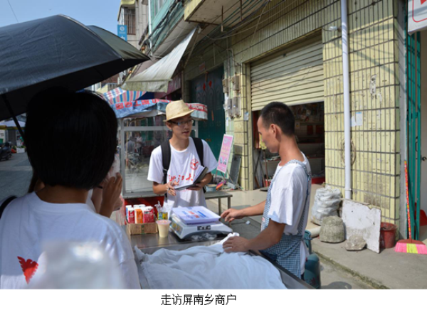7月18日,关爱留守儿童团队成员们来到屏南乡走访商户,了解到随着国家交通与经济的发展,越来越多在外打工的留守儿童父母有意识回到故乡创业或是工作,方便陪伴教育孩子,仍然在外打工的父母也能更方便地回家与孩子团聚。在走访中,一位在屏南乡教了近20年书的中学老师表示留守儿童最缺乏的是父母的关爱与家庭教育,同时也表示近几年随父母一起外出读书的学生越来越多,留守儿童数量有减少的趋势。另外,小组成员还采访了合寨小学的教导主任,了解到大多数留守儿童都非常有集体荣誉感,从小十分自立,并且随着经济的发展,许多父母也选择就近打工的方式,以便对孩子进行更好的教导。在7月20日,小组成员来到乡政府了解当地留守儿童数量,数据显示,在屏南乡,至少有70%的孩子属于留守儿童,其中不乏有的患病、甚至残疾,留守儿童作为一大社会问题仍然需要社会的关爱和呵护。