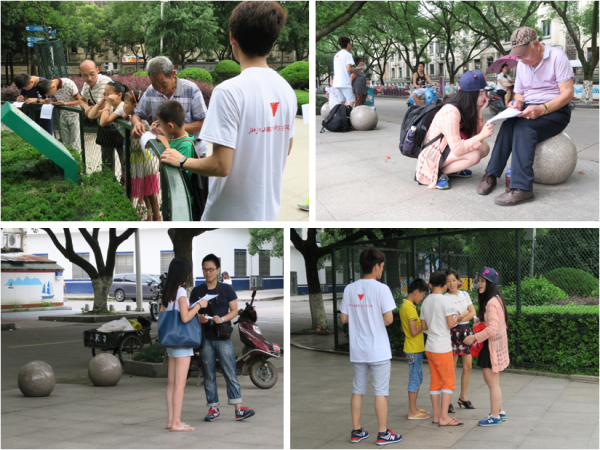 7月18日早6点钟,实践团一行7人已在浙大玉泉校区门前集合赶赴车站,搭乘火车来到浙江省台州市。刚下火车的团员们马不停蹄地赶往市区开展他们的第一项实践任务:台州市红色教育与宣传情况调研。大家背着沉重的行囊,走入大街小巷,手拿问卷,开始了他们的调研与采访。为了确保样本的多样性,实践团成员们访问了各个年龄段、不同职业的群众民众,包括公园散步的退休夫妻、整理公共自行车的勤劳师傅、外出采购的解放军战士、高考刚刚结束的准大学生……遇到对调研内容较为了解的群众,团员们还会对其进行深入的采访与交流。酷热的烈日、当地语言的障碍给调研活动的开展带来了不少困难,好在热情地台州人民给予了团员们很大的支持,认真的完成问卷,并细心地向团员们介绍他们对红色革命精神的理解。一位刚到台州工作不久的大哥说“当时的革命将士的牺牲精神是我们当代人所欠缺的,这是因为大家心中少了一种信仰,现在政府投入很多在红色旅游上面,效果也很好,让大家心中有历史,但红色旅游不能仅是旅游,更是要让大家体会到革命精神的时代意义”。