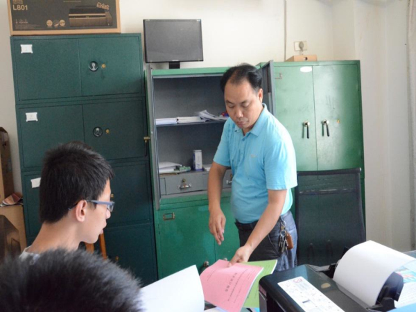 当天上午,队员们采访了水利局李站长、环保局部分工作人员,了解了宜州当地水资源基本状况并就其保护和利用提出相关问题。在其过程中,李站长耐心地为队员们讲解了宜州近些年来对当地水资源保护所做出的努力,并在下午亲自带领他们实地考察了重新修缮过的六坡水库。队员们在水利调查过程中,认真记录并对六坡水库的水体进行了采样分析。
