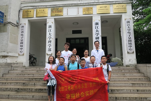 9月5日,浙江大学电镜中心迎来成立以来的最年轻的一批参观者:来自星洲小学的7位五年级的小学生。实践团队成员首先向孩子们简介了电镜中心以及电镜相关的基础知识,随后带领孩子们参观了电镜中心的主要电镜,最后利用S3700和孩子们一起探索了桂花、头发、绿萝叶、苦荞茶等一系列生活常见物品的微观结构。