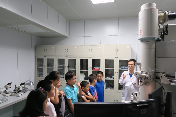 这次,来参观电镜中心的7为小朋友年龄都在12岁左右。很多小朋友表示收获颇丰。其中一个小男孩儿说:“以后,我也要做这个”。