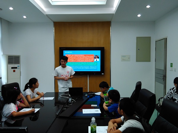 在队员的带领下,孩子们和家长来到电镜中心一楼会议室。队员首先向孩子们分发了相关资料。而后,以“宇宙的尺度”Flash开始向孩子们介绍“尺度”的概念。要向小学们讲清楚电子显微镜是一项“mission impossible”。刚上五年级的孩子们还没有元素的概念,波粒二象性、德布罗意波等知识高中才学习,更谈不上阿贝成像原理等相关专业本科生才会学习的知识。通过一系列的比喻和选择性的介绍,并在家长的积极“翻译”下,最终孩子们明白了电子显微镜的基本作用。“老师,老师,什么是十的负九次方啊”“哇,头发的五万分之一”“水分子,原来长这样”“我知道,小刀是金属”,整个讲座就在这样的问答讨论以及感叹中结束。
