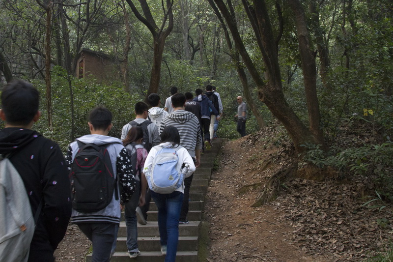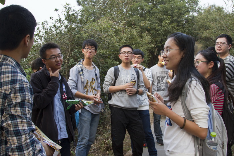 下午四时,我们一行14人从老和山山脚处上山,历经千百阶梯蜿蜒回转,始得“正果”。同学们兴致昂扬、热情勃发,聊着轻松愉快的话题,欢声笑语不断。班团委提前准备的食物给我们提供了充分的登山能量的支持,团支书的智力问答是对我们的知识进行了360度全方位的“轰炸”,答对问题最多者获得了丰厚且实用的奖品。