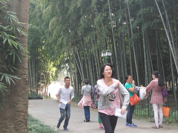 在山地,在竹林,同学们在飞快穿梭。短短30分钟,第一个小队的成员便全数回归——满头大汗,却兴奋不已。随后各队陆续返回,在大本营吃着点心歇息,当然也有艰难绕路才找到目标点的小队。满怀期待中,颁奖仪式开始,排名靠前的小队高喊队伍口号,收获了他们满意的奖品——乒乓球拍和羽毛球拍。后进的队伍也得到了一定的奖励。随后,支部成员一起到青芝坞聚餐。