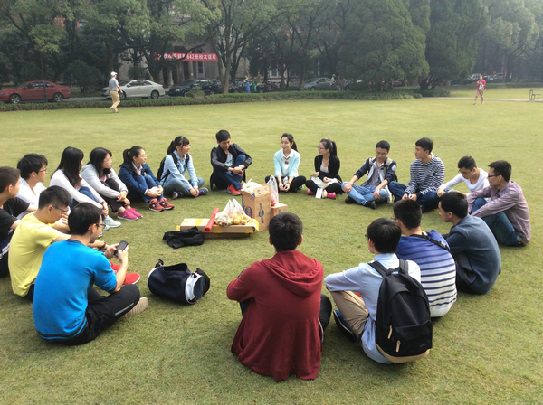 10月17日上午,同学们在玉泉大草坪集合。紧接着的破冰活动在欢声笑语中展开,随后四个红色小分队分别形成:“平民队”、“星星之火队”、“少年先锋队”和 “四个全面队”,每个队伍都解释并阐述了队名的含义,体现大家对时政的了解和认识,也有自己的口号,积极向上。留影纪念后大家整装待发,直奔目的地——玉泉植物园。