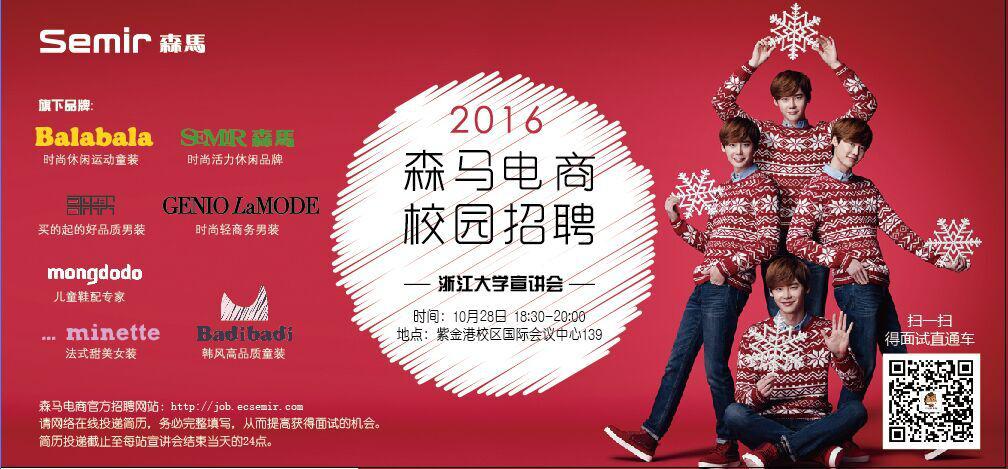 1、你敢来,我们敢送!分享转发森马电商浙大宣讲会相关信息,集赞满30,送面试直通车及森马公仔。(领取方式:将集赞截图并保存至手机,到场签到时核对,前20名同学可领取森马公仔。 2、我知道你们对offer已经饥渴难耐了!宣讲会现场不仅将送出精美围巾,书包,更有现场抽取发放面试直通车券,参加宣讲拿面试直通券真刺激有木有!