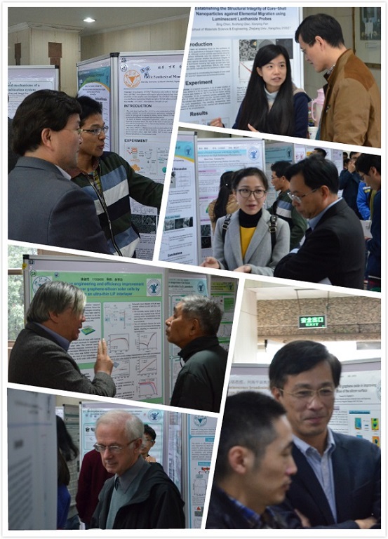 本次学术成果墙报展由副院长陈立新教授主持,材料学院学术委员会主任叶志镇教授致辞,学院院长韩高荣教授、院党委书记刘艳辉老师、副院长吴勇军教授及各研究所的老师们均到场出席。