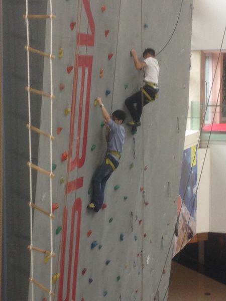在跟随教练学习之后,早已迫不及待的同学们纷纷踊跃向前尝试,很多同学初学就爬到了很高的位置,就连女生们也不甘示弱,巾帼不让须眉,爬的高度让不少男生都为之汗颜。更有同学下来休息之后还要再战第二次、第三次,并尝试更高难度的攀岩路线,不断的挑战自我、超越自我。