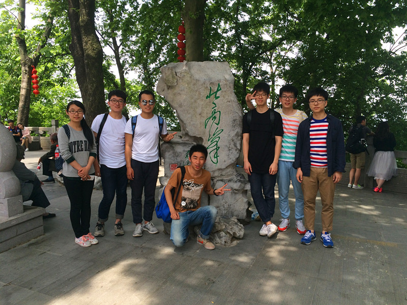 我们途径老和山、将军山、美女山、灵峰山、瑞云山、状元峰,最终到达北高峰。在毛泽东同志题词的“北高峰”石碑前合影留念后,我们乘坐缆车下山,返回玉泉。今天的活动结束了,但同学们的情谊将同五四精神一起永远传递下去。