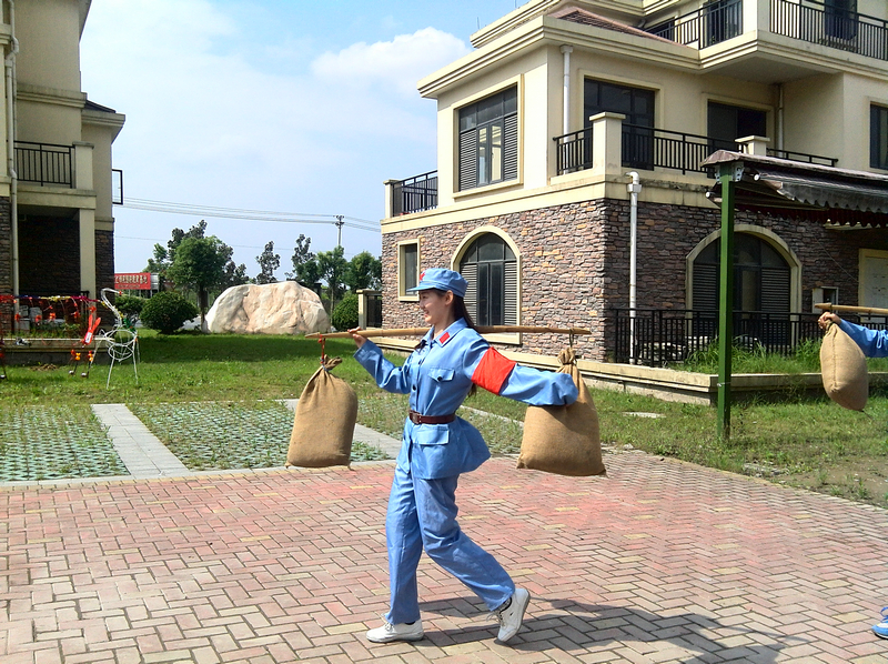 图5 女生在挑扁担