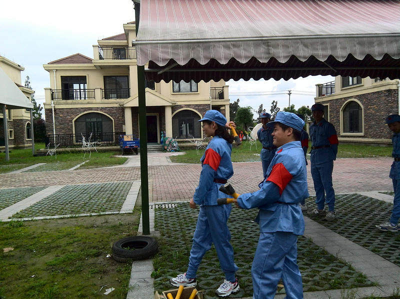 为了增强连队的凝聚力,充分发挥成员们的智慧,指导员还带领大家进行了一系列的素拓活动,比如:撕名牌、拉拔河、吹气球等等。
