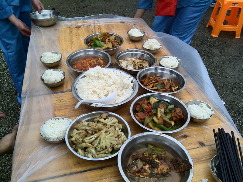 时值中午,红色体验基地方面为大家提供了原料食材,包括有韭菜、鸡蛋、鱼、鸡肉、黄瓜、紫菜等等,支部成员们开始忙碌地用提供的木材生火,随后便是一些成员大展厨艺的时候了。