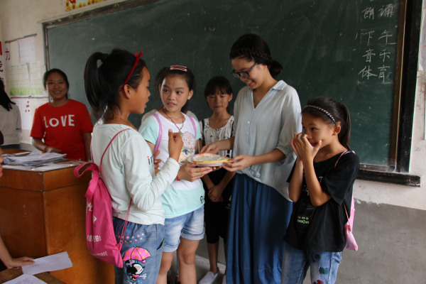 一座简朴的农家小屋前,两道火红的墨字对联下,一位衣着朴素的中年妇女正在和两位年轻老师热切交谈着。她便是研研的母亲,也是家里唯一一个主持家务的中年人。轻松的家访中,老师们了解到,和许多其他孩子一样,研研的父亲与哥哥都正在外出务工。研研能够见到父亲的机会也比较少,或许她略微内向的性格也与此有关。接下来,老师们向研研母亲了解了关于家庭经济状况、研研的课外学习与家务活情况以及未来对研研的期望等。