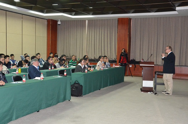 Prof.Sven Lidin首先介绍了诺贝尔奖的由来,通过对诺贝尔本人的介绍以及设立诺贝尔奖之初的一些事件使同学们了解了“Why there is a prize?”,随后他介绍了诺贝尔奖的评选流程,使在场师生对诺贝尔奖的整个评选过程有了前所未有的了解;接着Prof.Sven Lidin说到诺贝尔化学奖目前的趋势以及面临的挑战,比如现在越来越多的科研成果是科研团队合作完成的,而一个诺贝尔奖不能同时授予超过3个人;讲座的最后,Prof.Sven Lidin详细分析了历年来诺贝尔化学奖的地域分布情况,值得注意的是,进入新世纪以来,日本成为诺奖大户,在诺贝尔奖的舞台上绽放光彩,引发在场师生的深入思考。