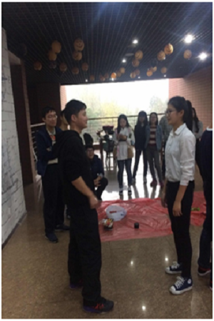 当天下午,我们到达了破冰场地——安中大楼。柔和的灯光和简约的装饰风格安抚了新成员紧张的内心。首先是各个部门成员互相熟悉了解,部长介绍自己部门相应的职能和需要承担的工作,成员们自我介绍互相认识。接着部长带着新成员和老成员一起玩一些小游戏来活跃气氛,放松心情。尽管开始大家都有些拘谨,但是在几轮游戏过后所有人都活跃起来了。这个时候,副主席杨扬和郑小奕引领大家围坐成一圈,每个部门派出一名成员来玩猜词等游戏。当惩罚输了的部门的部长的时候,气氛被推向了一个新的高潮,部长喝下副主席调的黑暗饮品表情各异,部门成员也是又说又笑。这次破冰活动,拉近了成员之间的距离,团结了各个部门。