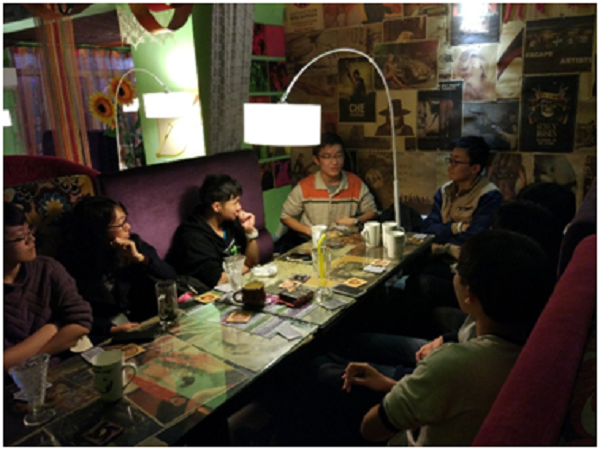 在结束了破冰活动后,我们一起去了位于紫金港校区东门外的童年小筑一起吃晚餐。经过了下午的破冰活动后,大家都不再拘谨,在餐桌上有说有笑,谈笑风生。现场气氛热烈,不时传来一阵阵的笑声。尽管窗外下着瓢泼大雨和杭州的寒冬即将来临,围坐在圆桌周围的我们说心里仍然能感到贴心的温暖。吃过饭后,我们还一起去北街玩了桌游。