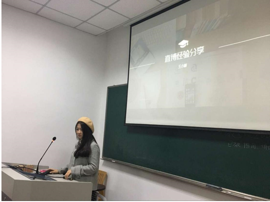 然后,王小彬学姐介绍了她直博的经验。她提醒同学们可以关注一下保研的加分项,如星级志愿者和科研论文,以及强调了绩点的重要性。她向同学们介绍了联系导师的途径比如SRTP综合实习等。