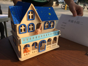 在比赛进行过程中,由于各组模型之间存在简易差异,成员人数存在差异,本次活动采用的是搭建小屋并DIY创作之后再统一投票的形式,女生们做得十分细心,在最后的DIY过程中显示出了艺术技能,而男生们的作品呈现出干净利落,嬉皮的风格,混搭的队伍也是别出心裁,搭建了属于他们队伍的七彩木屋。