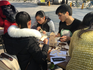 下午1时准,比赛正式开始,每个团队挑选了自己想搭建的模型,并开始积极准备方案。每支队伍虽然人数上有差异,但是队员之间的默契是一样强的,积极性是一样高的。参赛同学们俯在桌旁,仔细研究着图纸;也有不少同学驻足观看。虽然场地有限,参加活动的人员众多,但由于前期策划工作的完备,学生会成员们工作认真,比赛现场秩序井然,进展顺利。