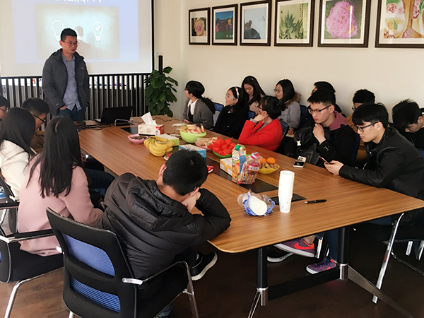 然后,研究生代表章乐同学代表半导体一、四支部就本支部所立足的叶志镇老师课题组进行了简单介绍,包括组内各位老师的研究方向、科研现状及组内氛围等。考虑到在场的本科生同学们大多选择继续深造,章乐同学根据本人亲身经验以及科研人士的共同心得,向在座的1304团支部团员们传授了“如何做科研”以及“本科生到研究生的心态调整”的心得体会。